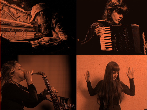 Eve Risser (piano préparé), Christine Abdelnour (saxophone alto), Emilie Skrijelj (accordéon) et Marion Cousin (voix) partent à la rencontre des grand-mères. Celles qui parlent en arabe, en patois normand ou en alsacien, en serbe, en anglais, en français d’avant. Celles qui chantent à mi-voix, racontent sans penser à raconter.